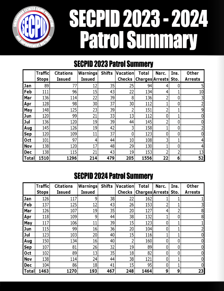 2024 was lower in each category of incident activity in the Shenandoah Estates Subdivision. This is a positive example how effective patrol work will result in effective prevention. This is achieved not only through the Deputies that work the Patrol Group, but also as a team effort through all that live in the subdivision.